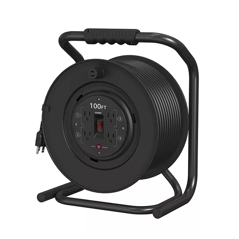 Многофункционална пластмасова макара за кабел с 4 изхода 100 фута може да се използва на място, включително спалня, всекидневна, кухня или дори в движение за дейности на открито и къмпингуване.